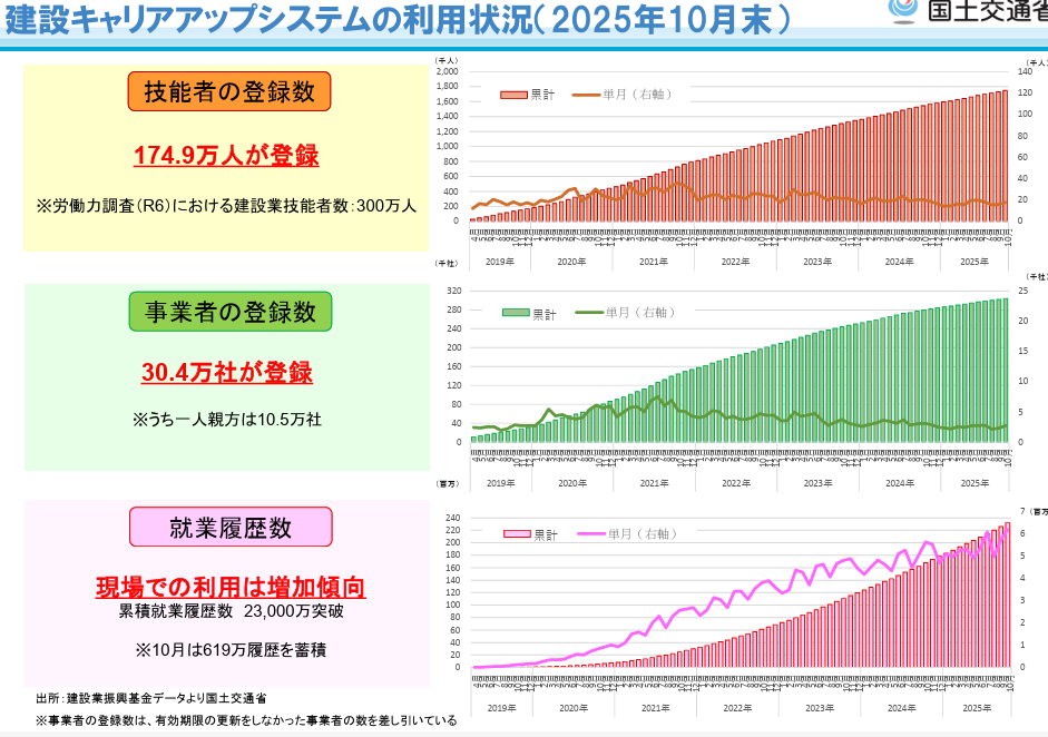建設キャリアの“見える化”が進み、CCUSで技能や就業履歴が記録されるようになりました。
