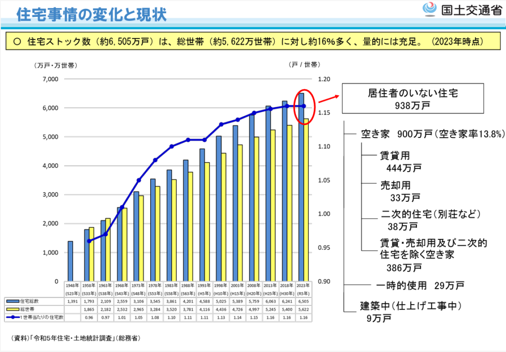 実はこの住宅総数は国内の総世帯数(5,622万世帯)に対して16%多い数字となっています。