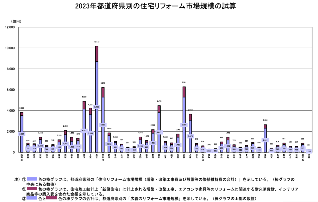 公益財団法人 住宅リフォーム・紛争処理支援センター「2023年都道府県別の住宅リフォーム市場規模の試算」