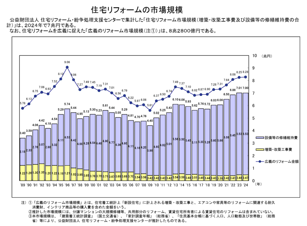 住宅リフォーム市場は、直近の推計で7兆円規模に達しています。